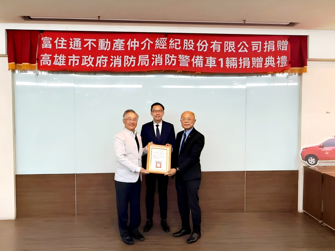 富住通商用不動產秉持「取之於社會、用之於社會」的企業理念,持續投入公益行動,落實企業社會責任。為強化消防救災量能、提升城市公共安全,富住通近日捐贈一輛消防警備車予高雄市政府消防局,協助第一線消防人員執行防災與救災任務。
